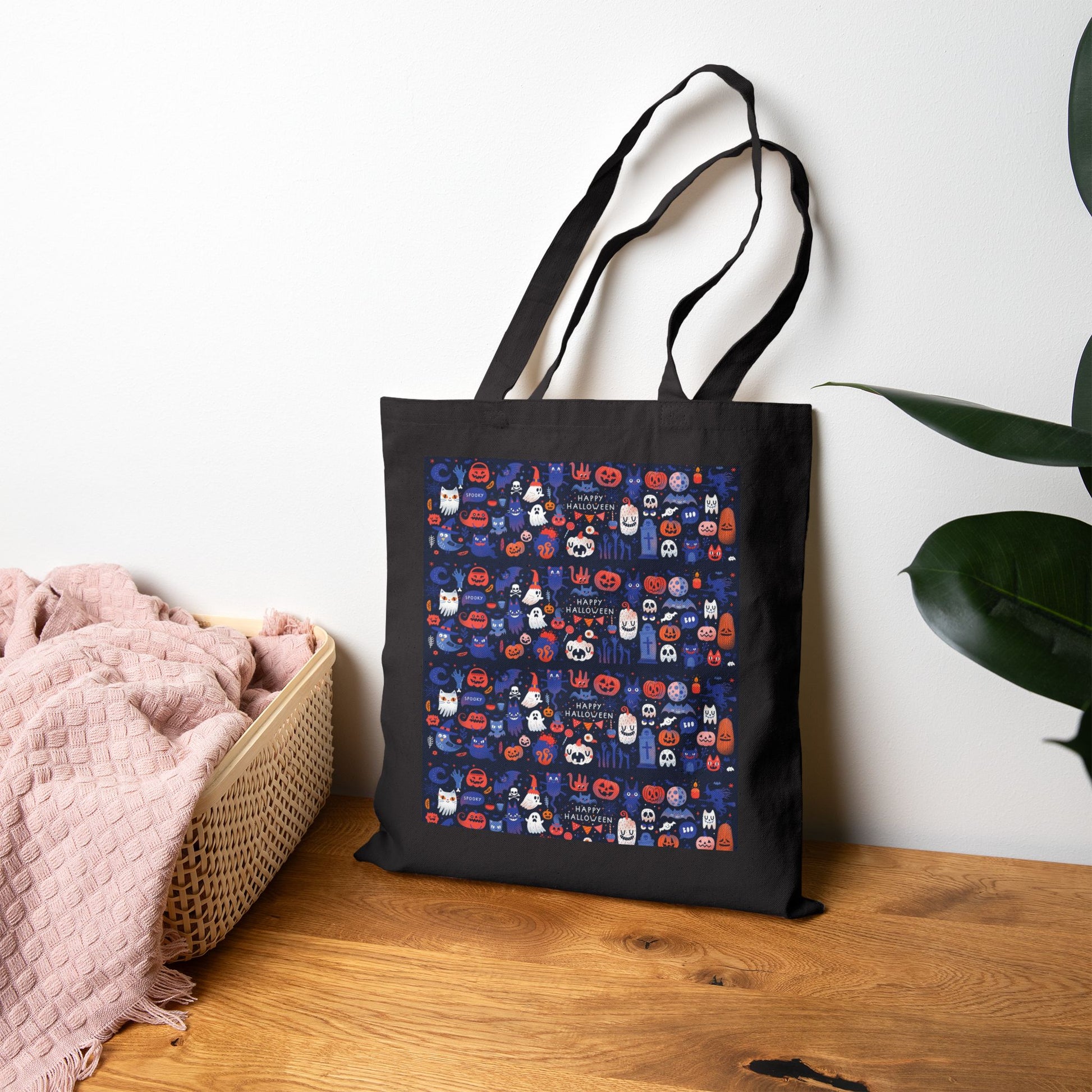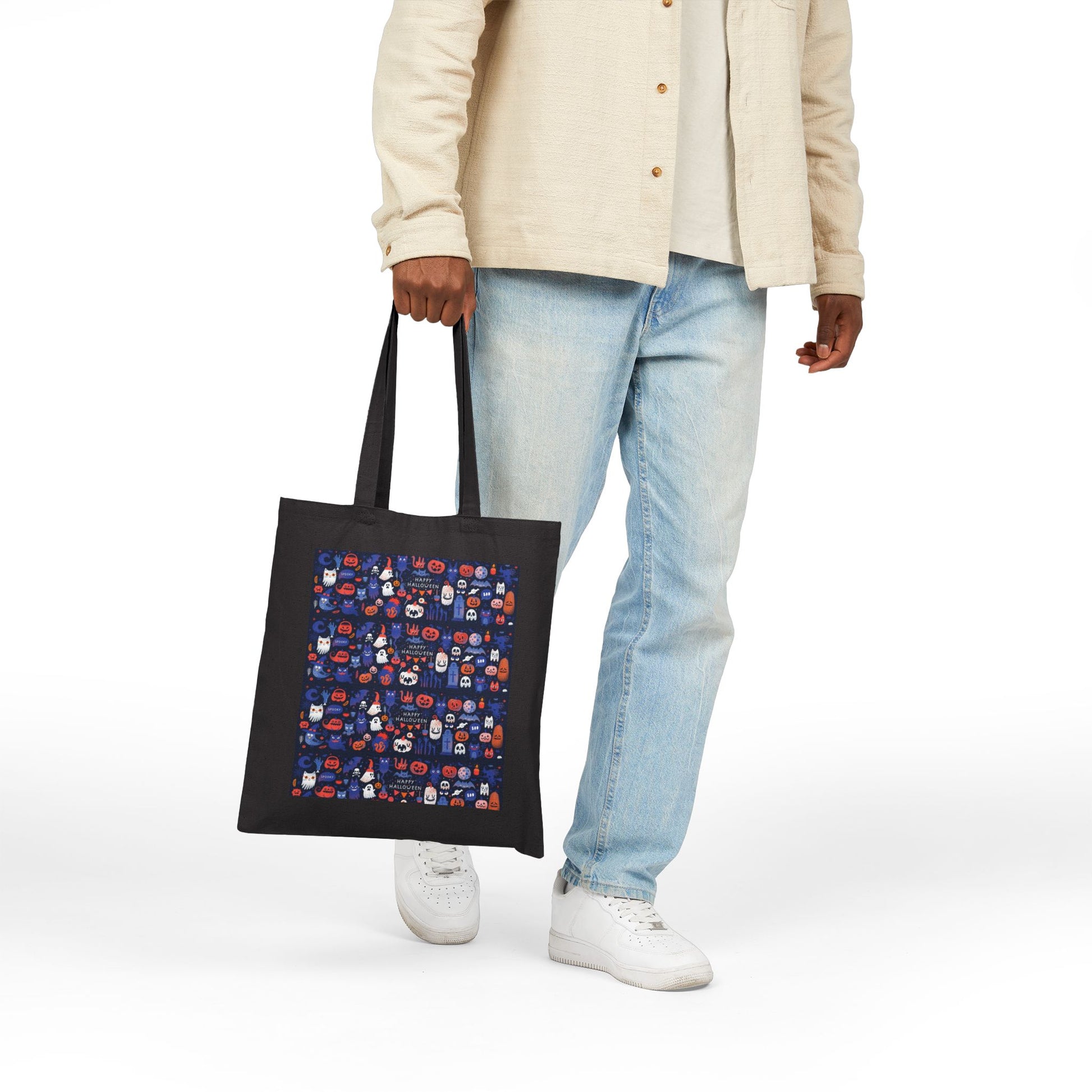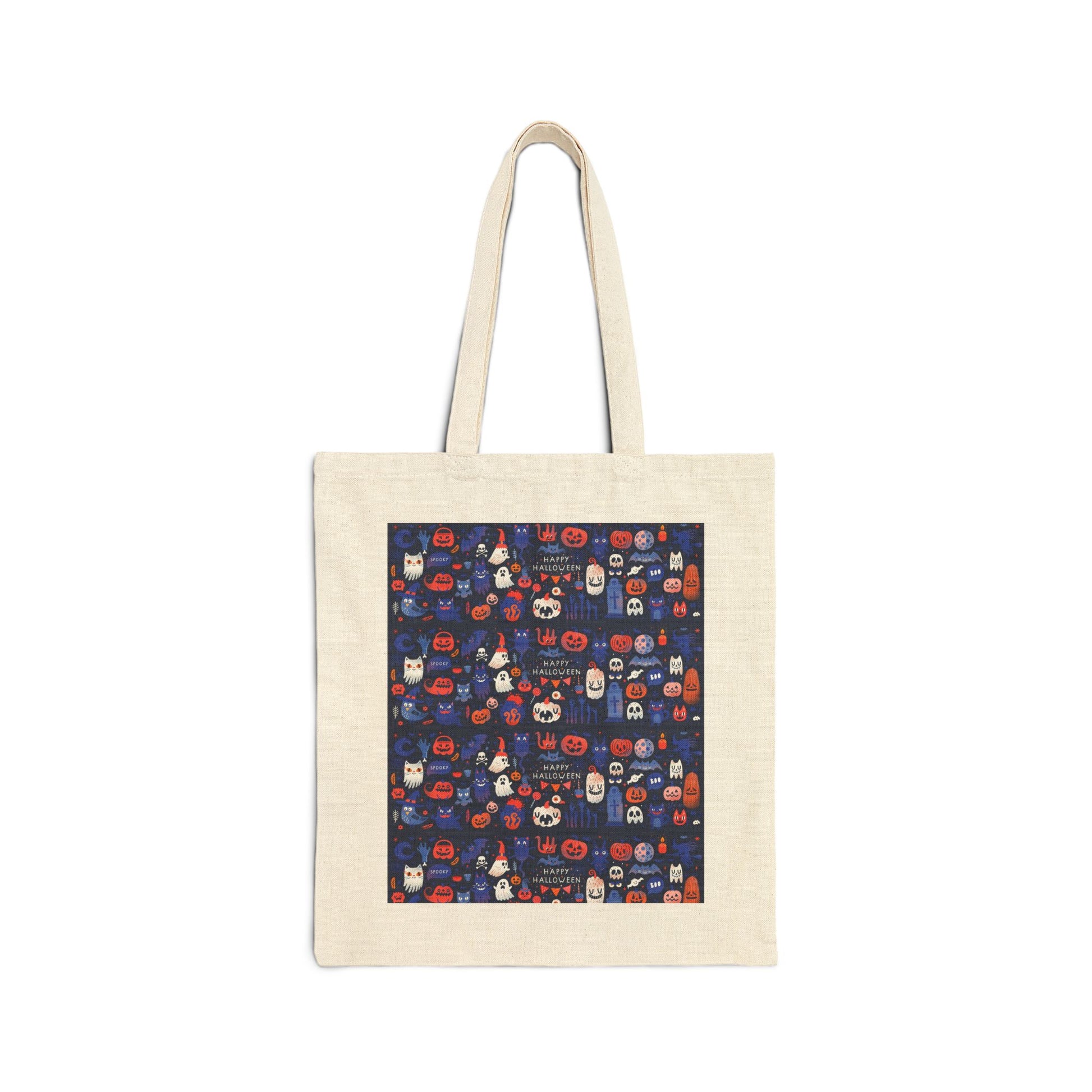 Whimsical Halloween Cotton Canvas Tote Bag, Eco-Friendly Shopping Bag, Trick or Treat Tote, Holiday Gift Bag, Festive Reusable Shopper