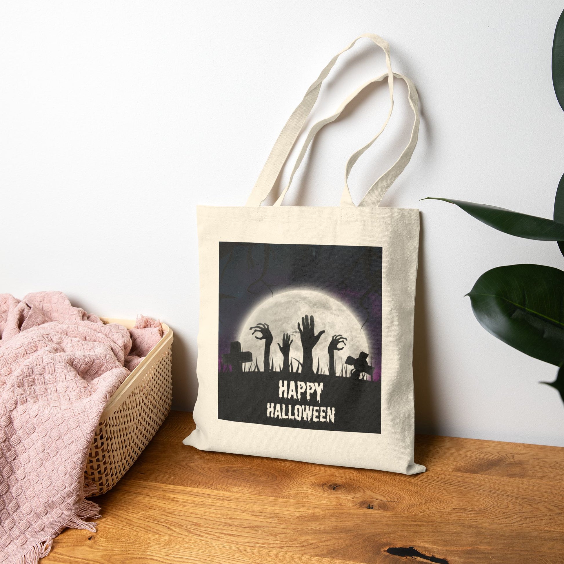 Whimsical Halloween Cotton Canvas Tote Bag, Eco-Friendly Shopping Bag, Trick or Treat Tote, Holiday Gift Bag, Festive Reusable Shopper